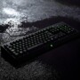 Apliqué materiales con acabados metálicos y plásticos para reproducir el aspecto característico de los periféricos de alta gama. Se trabajó la iluminación y los reflejos para destacar la retroiluminación verde y los detalles del logotipo, consiguiendo un contraste atractivo sobre un entorno oscuro.